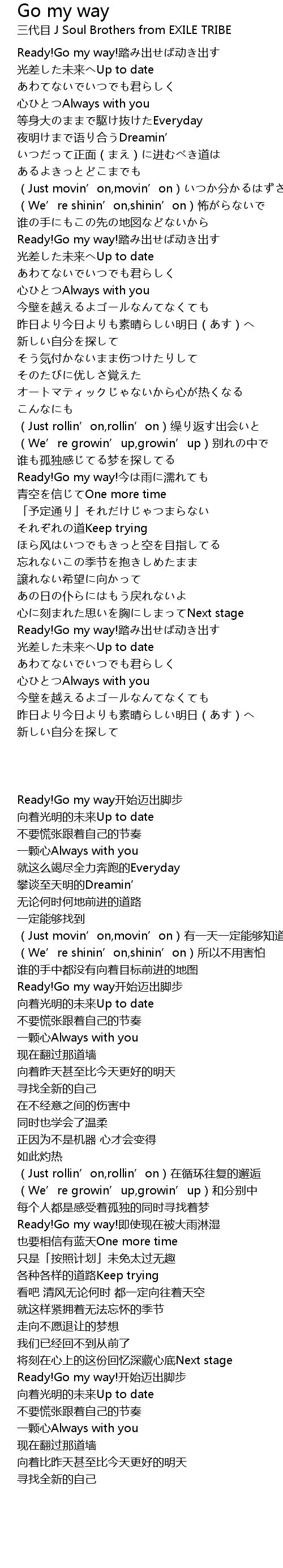 | [02:31.46] | Ready! Go my way! jīn yǔ rú |