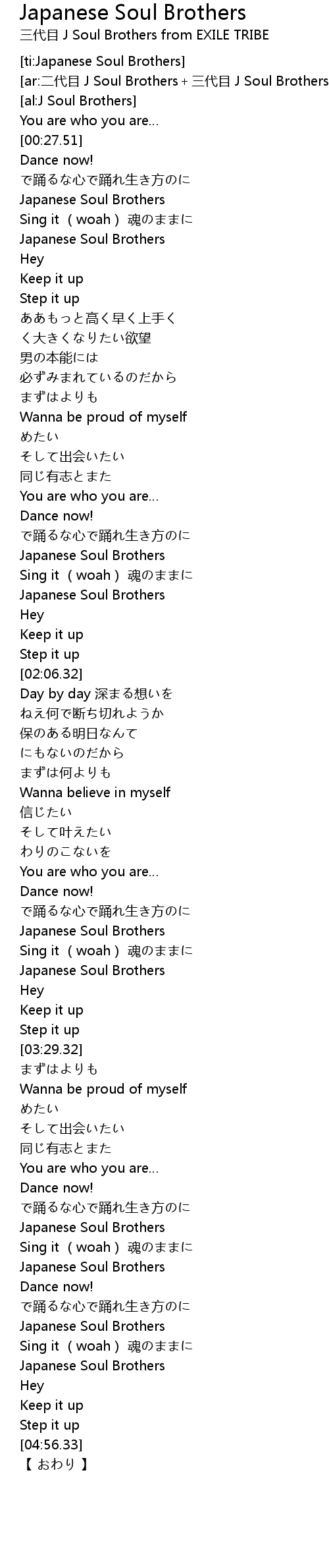 | [04:34.66] | Japanese Soul Brothers |