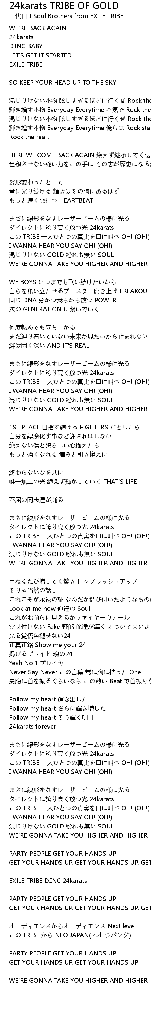 | Song | 24karats TRIBE OF GOLD |