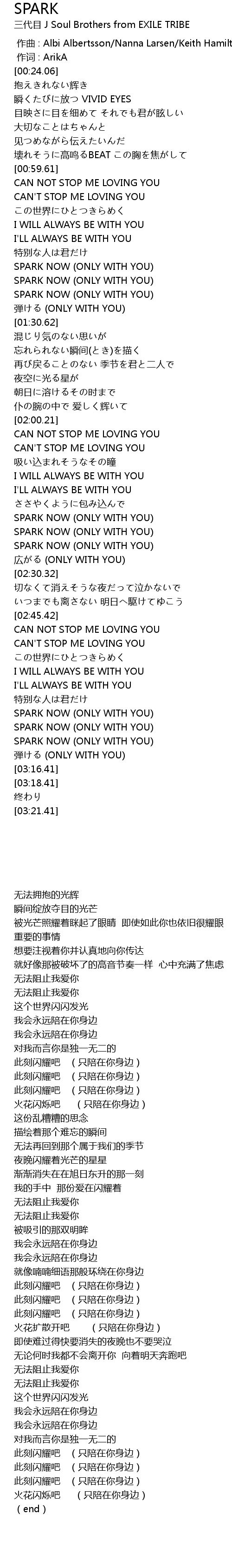 | [03:01.26] | SPARK NOW ONLY WITH YOU |