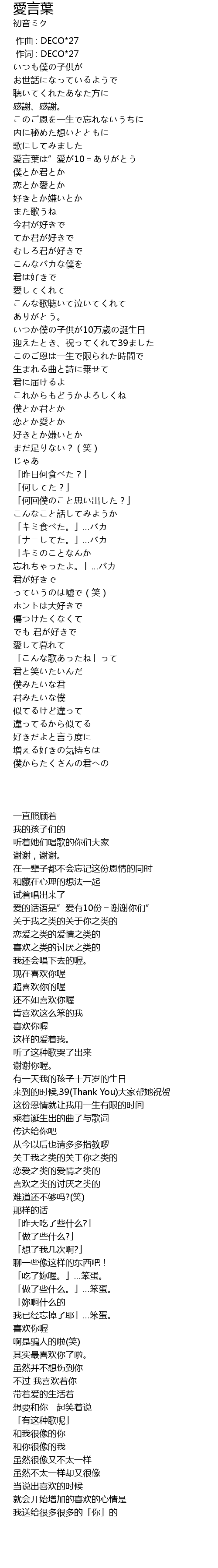 | [00:51.250] | 愛言葉は”愛が10=ありがとう |