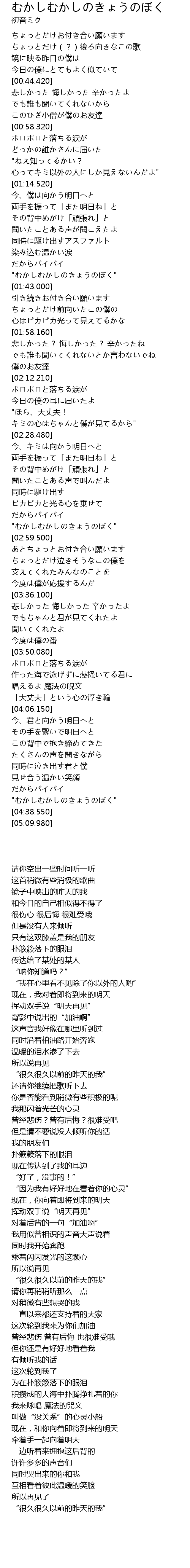 | [01:38.990] | "むかしむかしのきょうのぼく" |