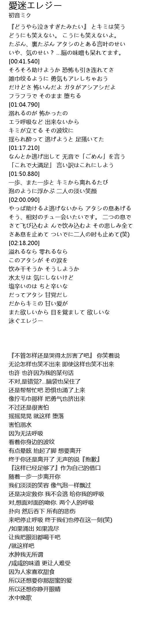 | [02:00.290] | やっぱ助けるよ逃げないから アタシの息あげる |