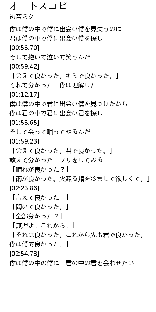 | [01:59.64] | 「会えて良かった。君で良かった。」 |