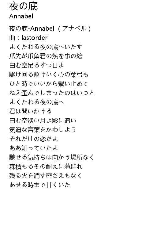 | [00:00.319] | 夜の底-Annabel (アナベル) |