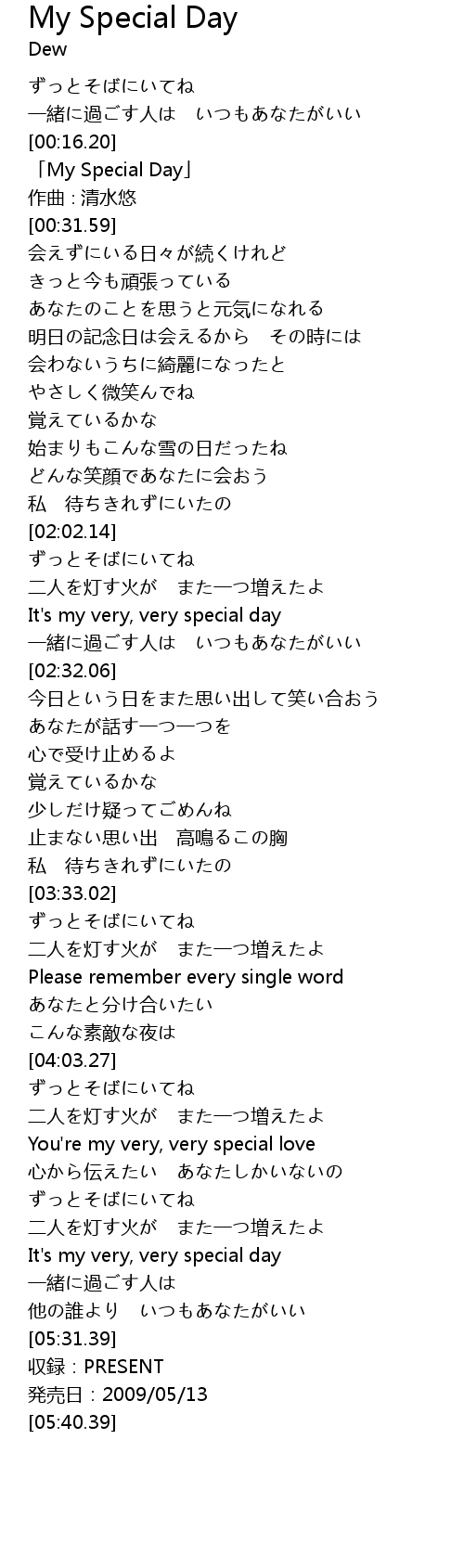| [00:19.59] | 「My Special Day」 |