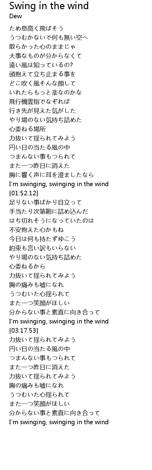 | [04:21.87] | I'm swinging, swinging in the wind |