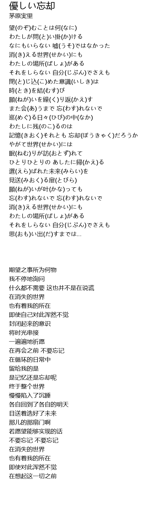 | [03:56.08] | 忘(わす)れないで 忘(わす)れないで |
