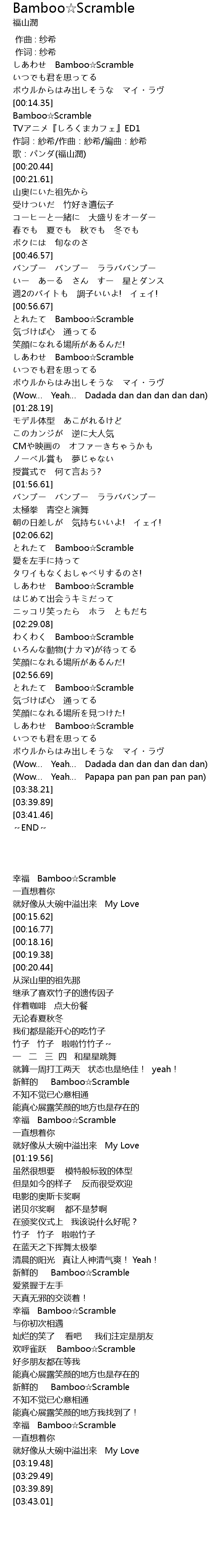 | [03:07.66] | しあわせ Bamboo☆Scramble |