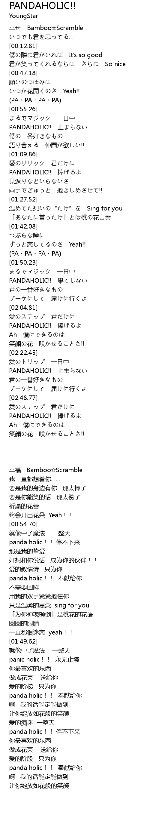 | [00:59.63] | PANDAHOLIC!! zhǐ |