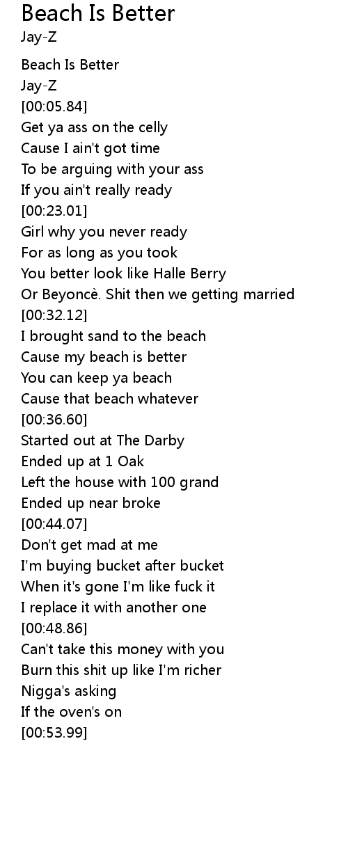 | [00:29.05] | Or Beyoncè. Shit then we getting married |