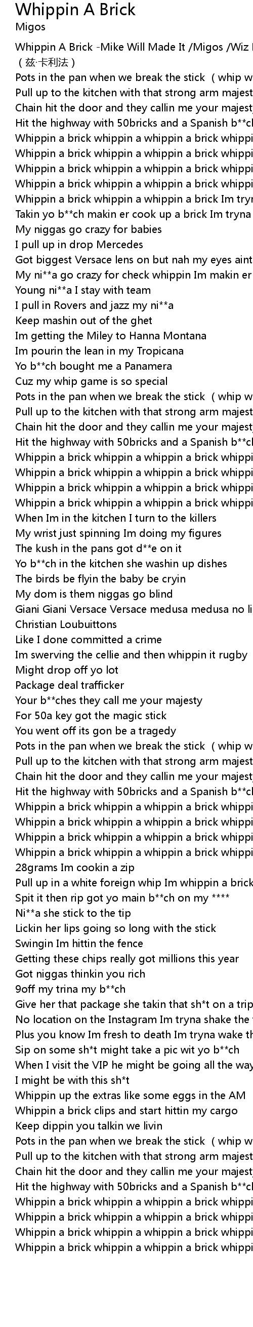 | [00:00.00] | Whippin A Brick Mike Will Made It Migos Wiz Khalifa zi ka li fa |