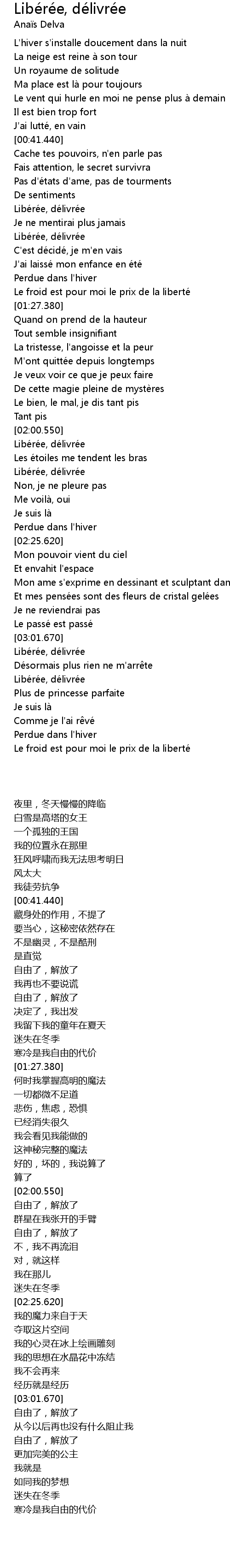 | [01:24.120] | Le froid est pour moi le prix de la liberte |