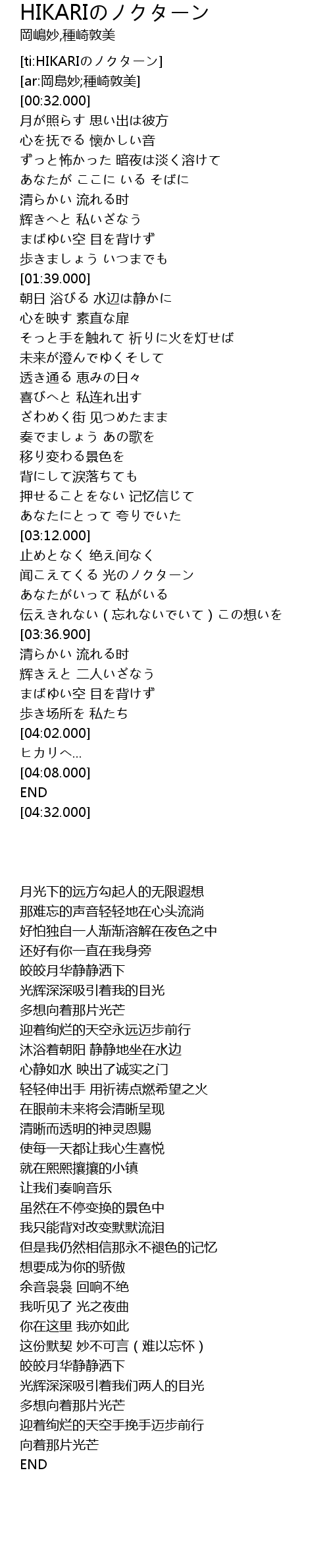 | [03:18.300] | 闻こえてくる 光のノクターン |