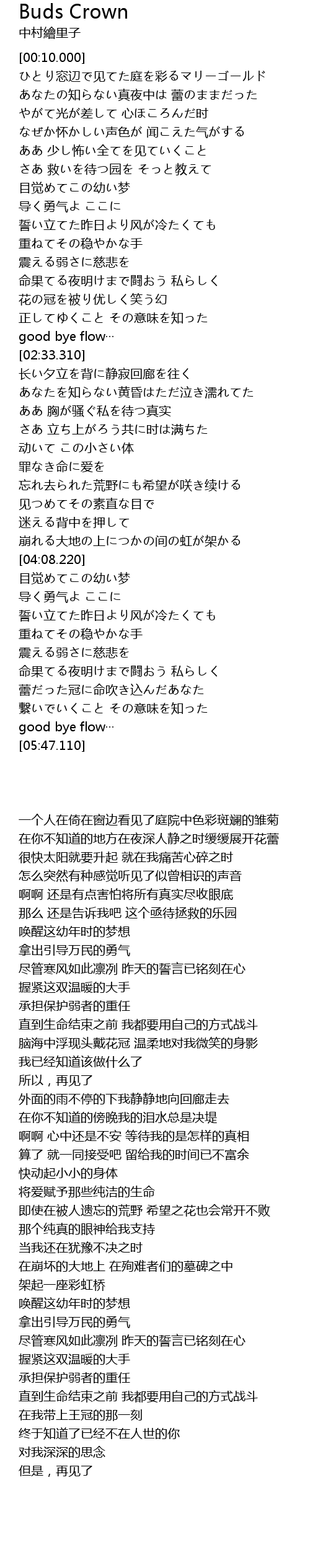| [05:22.920] | 蕾だった冠に命吹き込んだあなた |