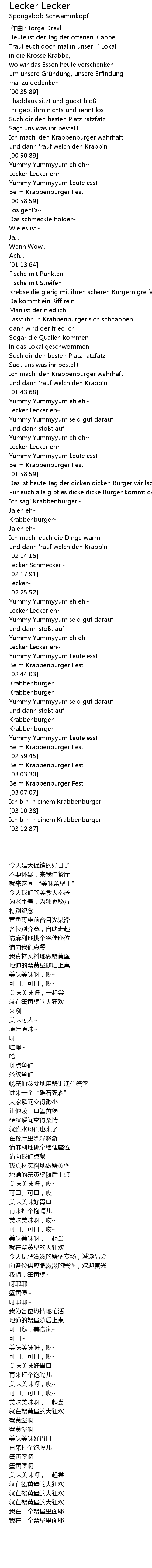 | [01:40.21] | Ich mach' den Krabbenburger wahrhaft |