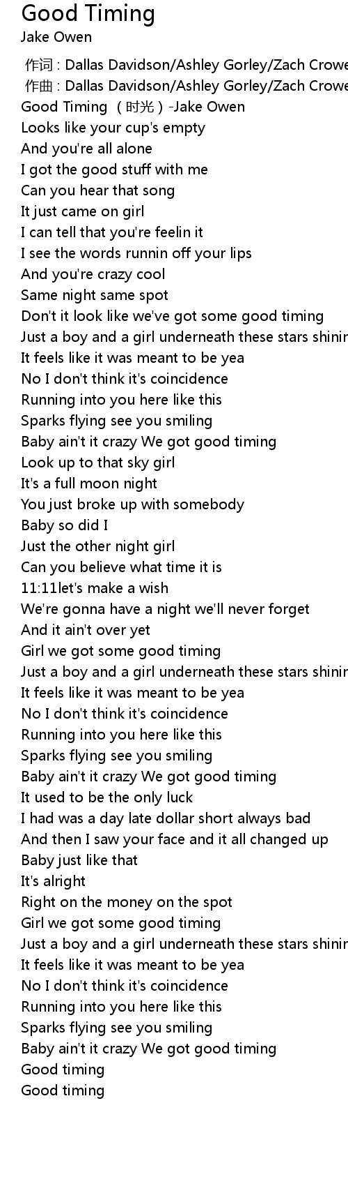 | [00:00.00] | Good Timing shí guāng Jake Owen |