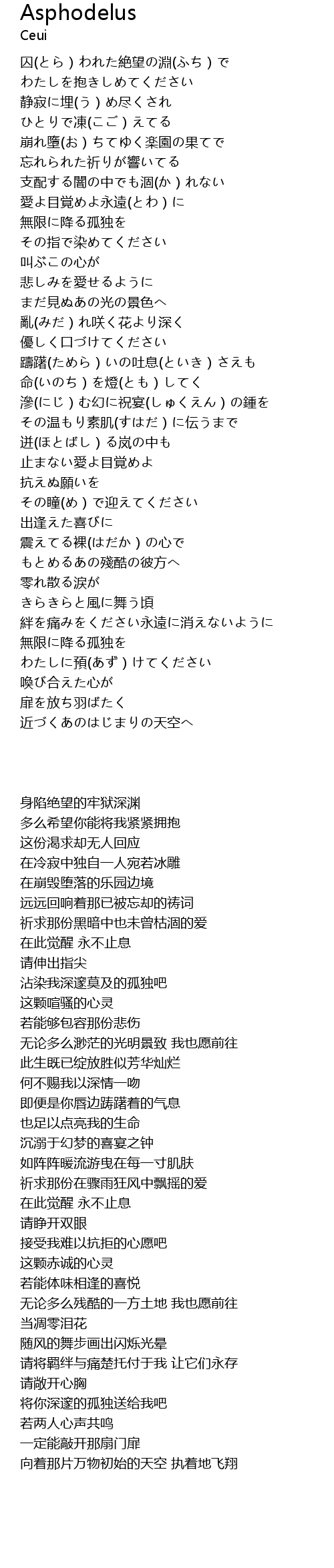 | [02:18.680] | 滲(にじ)む幻に祝宴(しゅくえん)の鍾を |