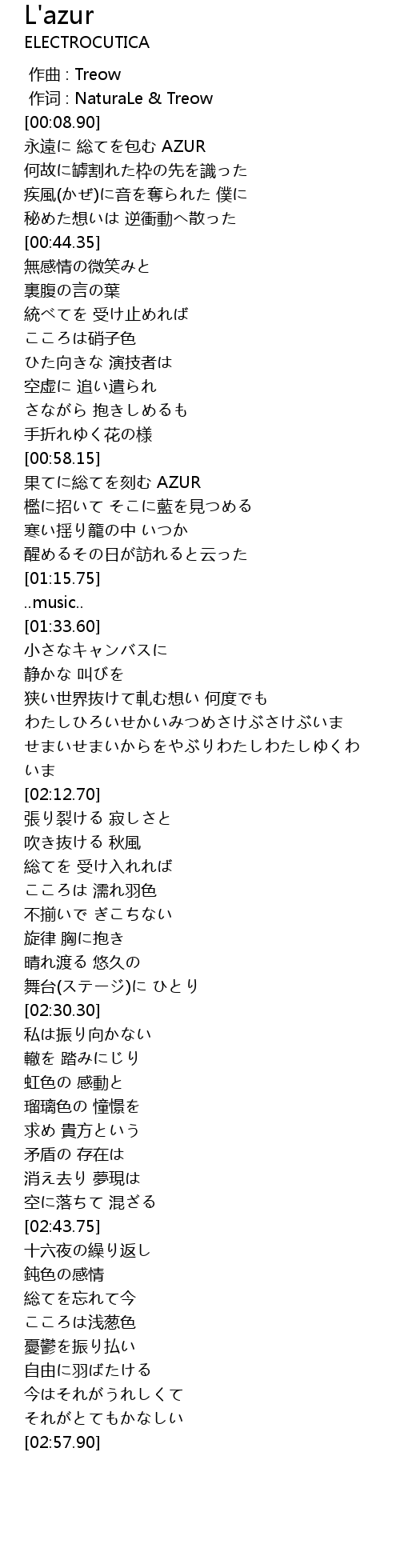 | [02:35.70] | 瑠璃色の 憧憬を |