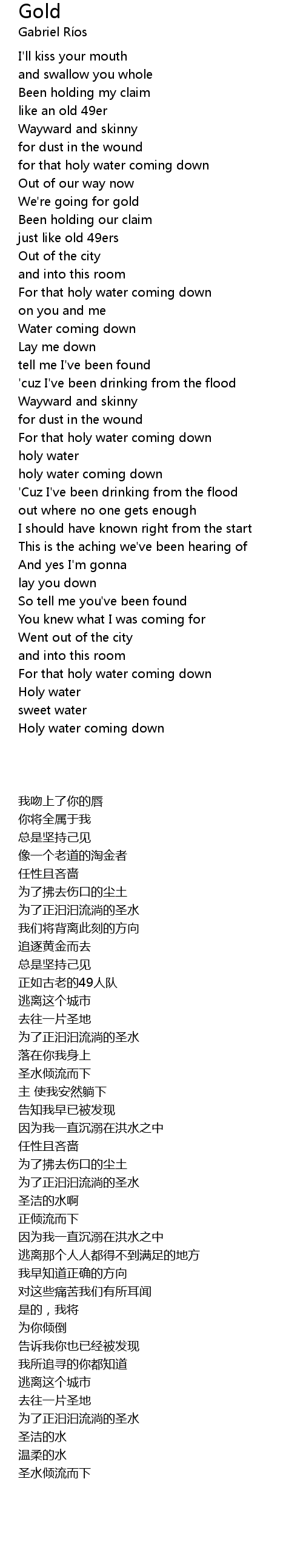 For that holy water coming down |