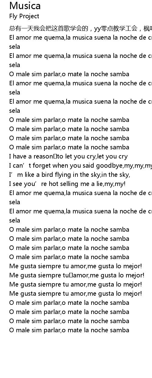 | [01:03.394] | O male sim parlar,o mate la noche samba |