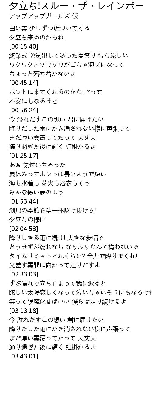| Song | 夕立ち!スルー・ザ・レインボー |