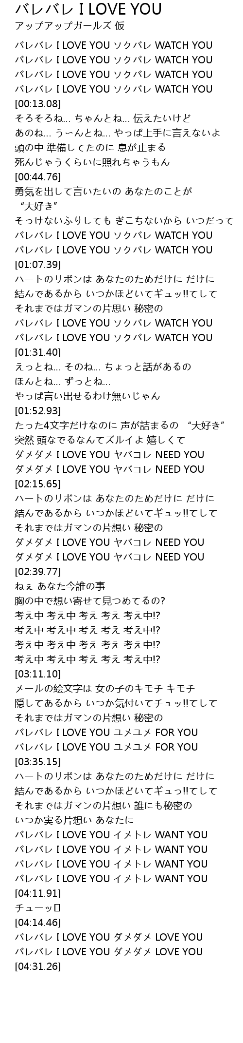 | [01:04.71] | バレバレ I LOVE YOU ソクバレ WATCH YOU |