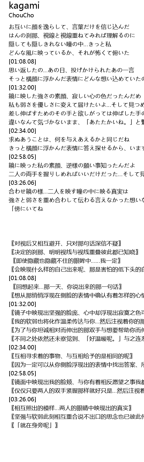 | [03:49.07] | 合わせ鏡の樣…二人を映す瞳の中に映る真実は |