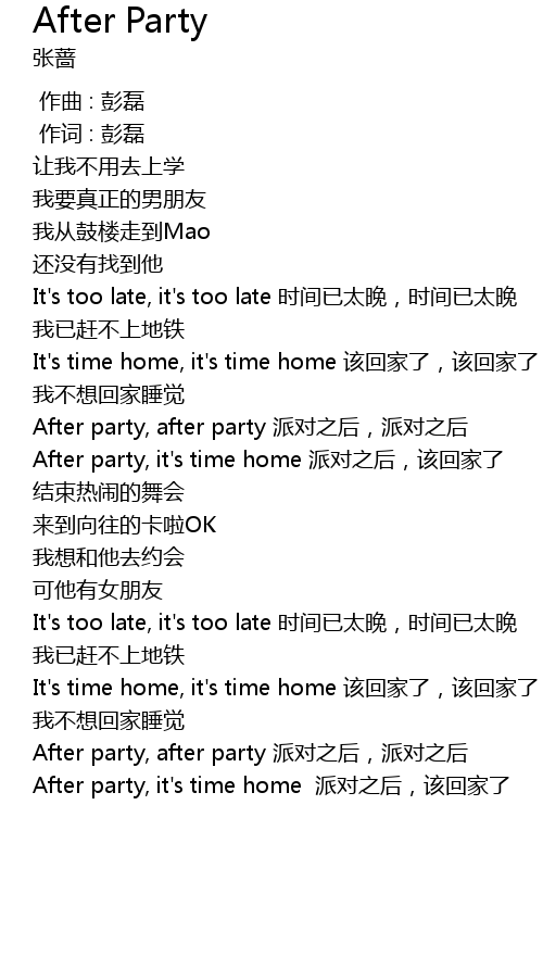 | [00:41.840] | After party, after party pài duì zhī hòu, pài duì zhī hòu |
