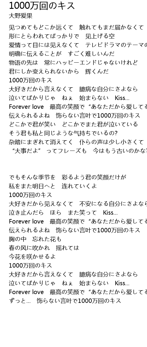 | 伝えられるよね 饰らない言叶で1000万回のキス | |