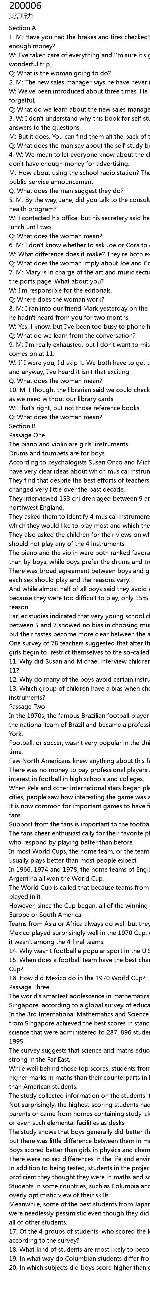 1. M: Have you had the brakes and tires checked? And do you have enough money? |