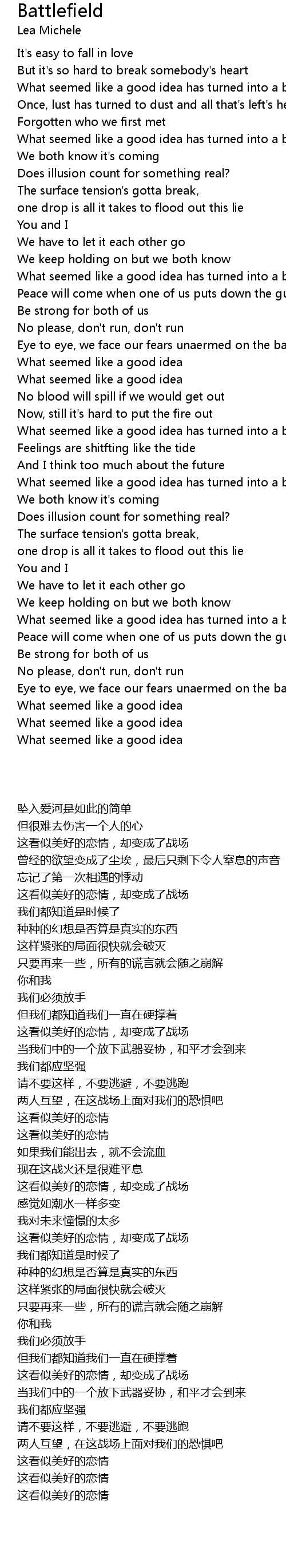 Eye to eye, we face our fears unaermed on the battlefield |