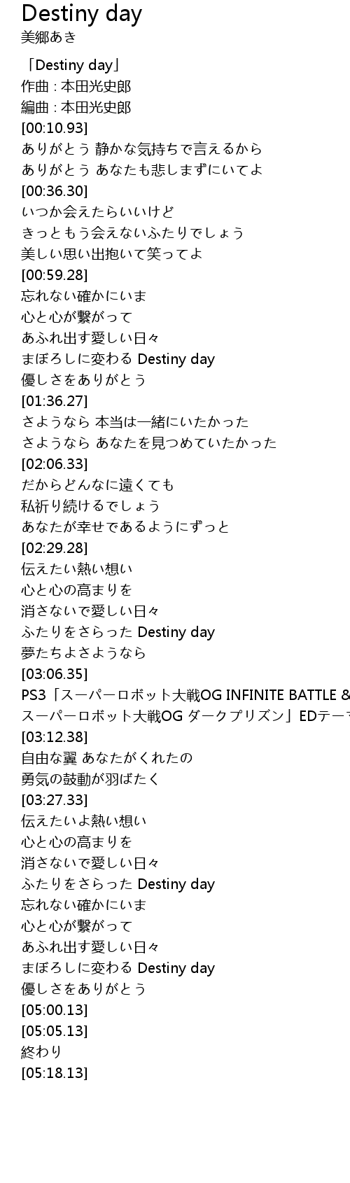 | [00:00.93] | 「Destiny day」 |
