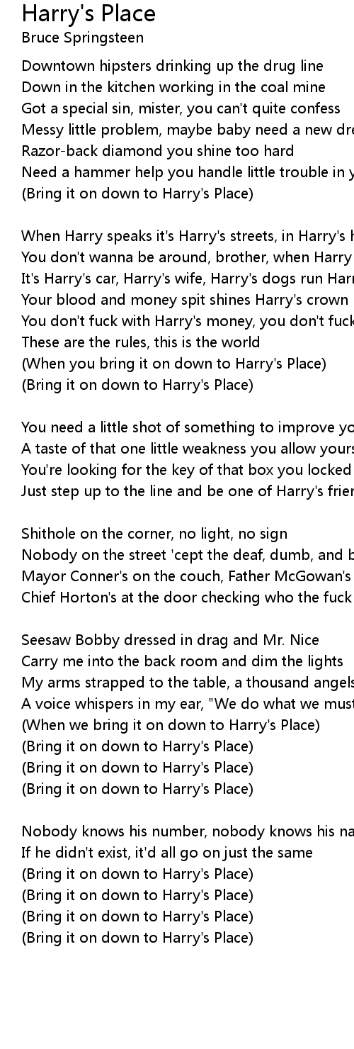 (Bring it on down to Harry's Place) |