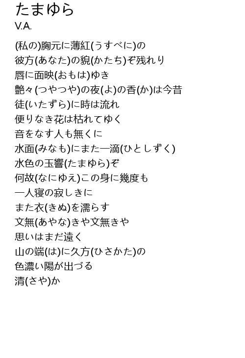 | [00:47.72] | 水色の玉響(たまゆら)ぞ |