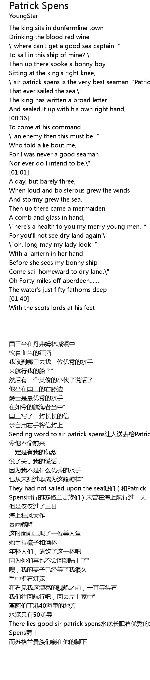 | [00:25] | \"sir patrick spens is the very best seaman“Patrick Spens |