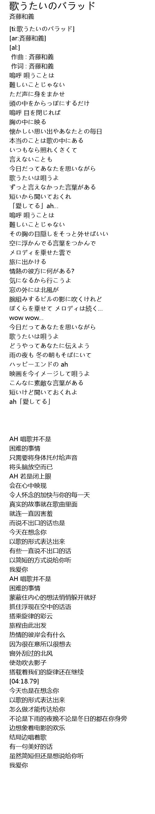 | [ti:歌うたいのバラッド] | |