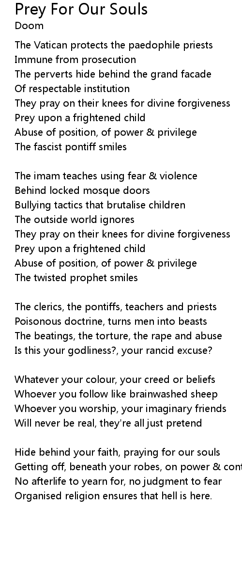 Hide behind your faith, praying for our souls |