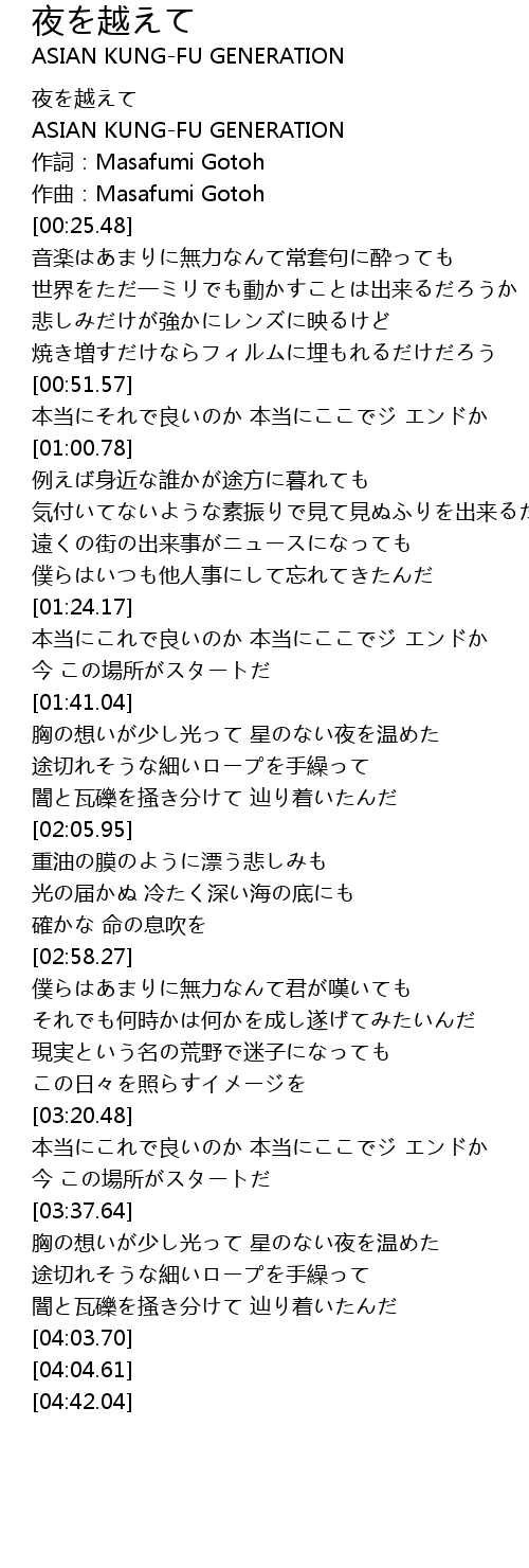 | [00:00.26] | 夜を越えて |