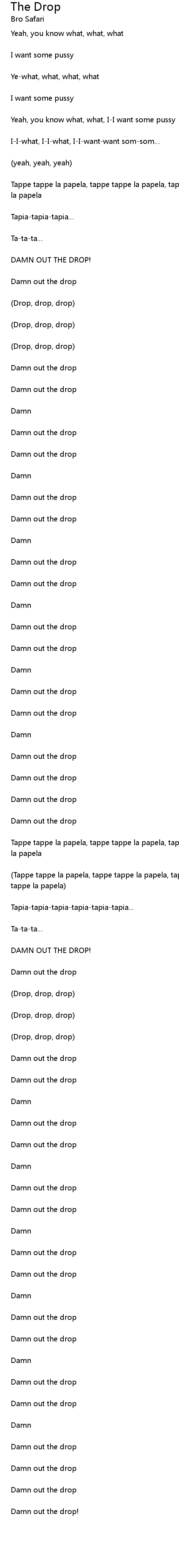 | Damn out the drop! |