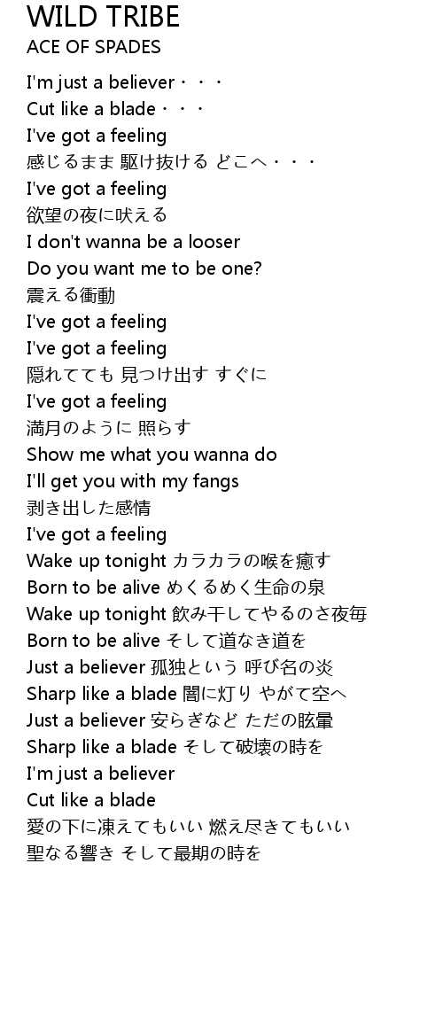 | Song | WILD TRIBE |