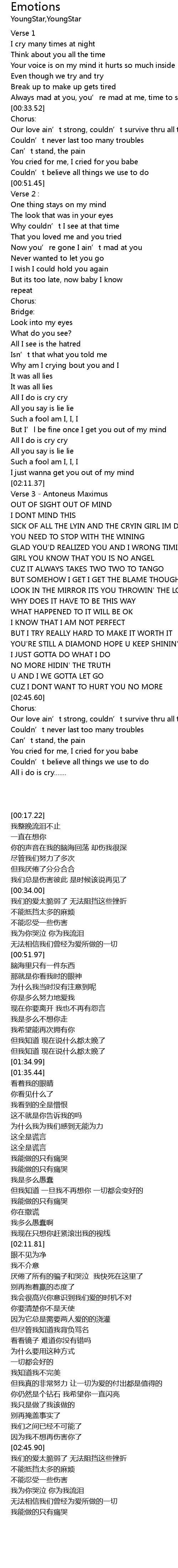 | [00:34.72] | Our love ain' t strong, couldn' t survive thru all these struggles |