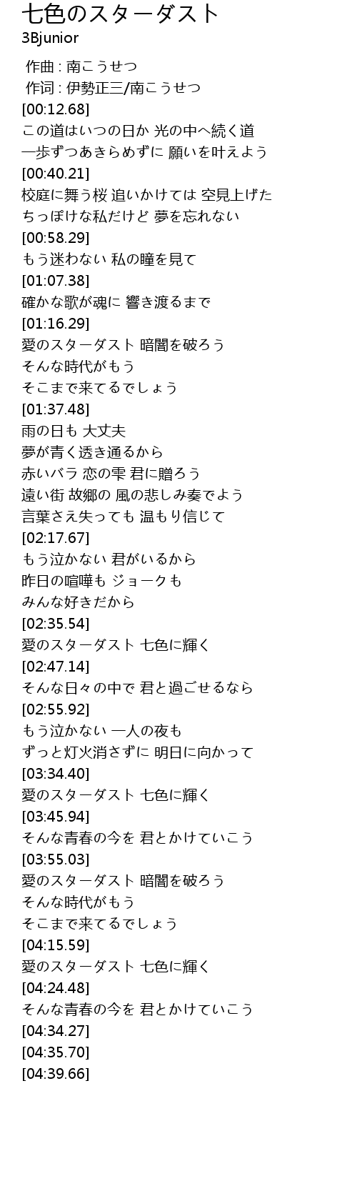 | [03:38.48] | 愛のスターダスト 七色に輝く |
