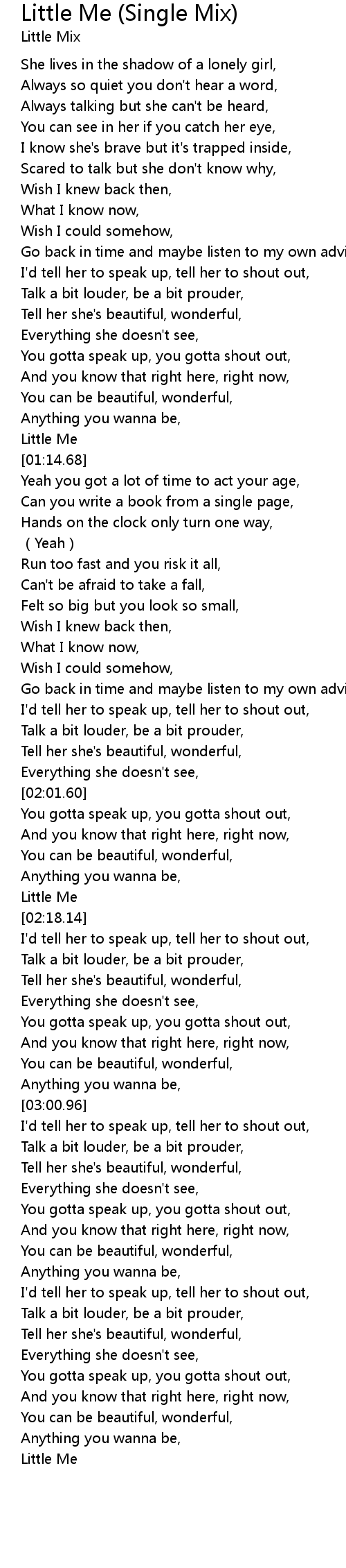 | [01:12.22] | Little Me |