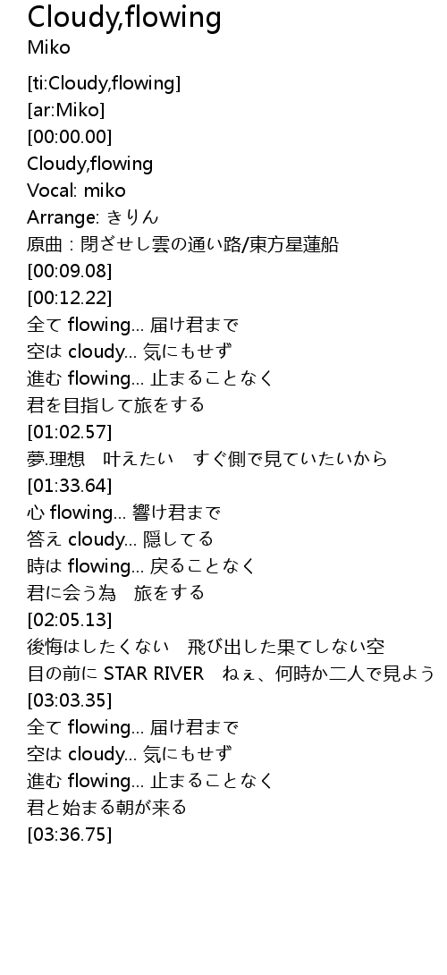 | [00:02.28] | Cloudy, flowing |