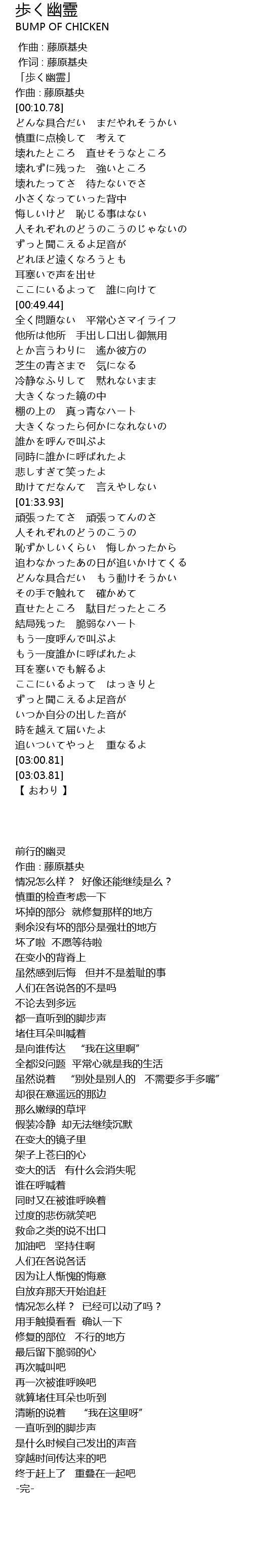 | [00:02.78] | 「歩く幽霊」 |
