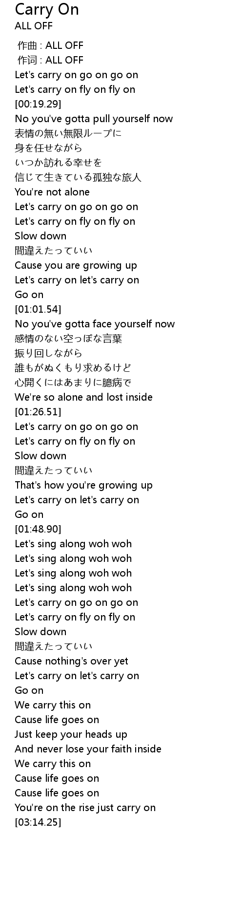 | [00:10.33] | Let' s carry on go on go on |