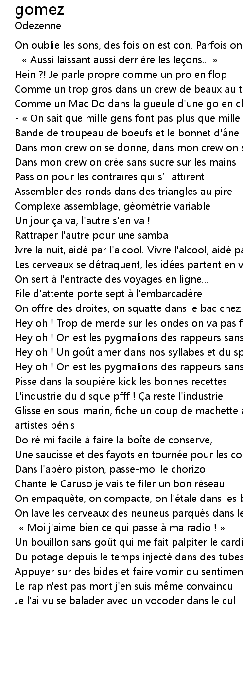 | Hey oh ! Un go t amer dans nos syllabes et du spleen en dé cibels | |