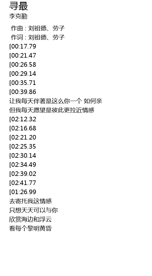 | [03:23.39][02:30.14][01:13.52] | 寻觅爱人是你寻觅爱人 |