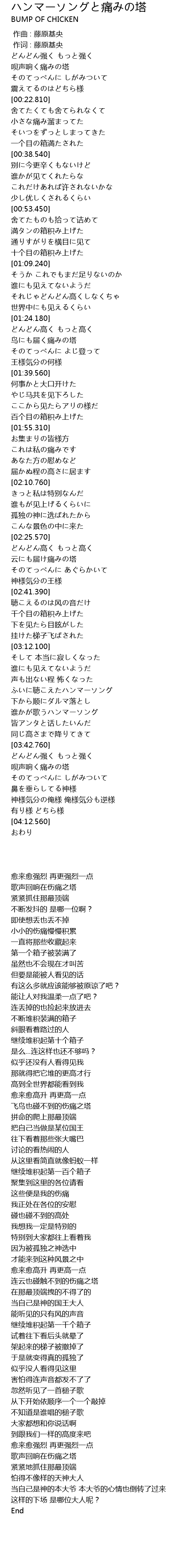 | [03:48.630] | 呗声响く痛みの塔 |